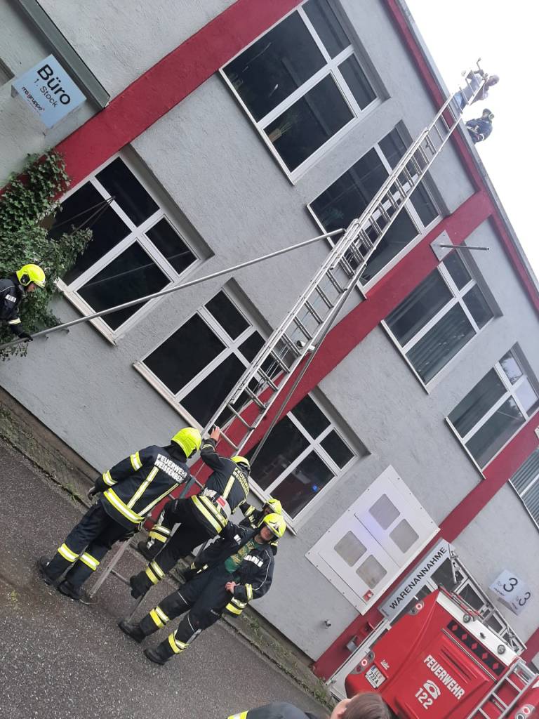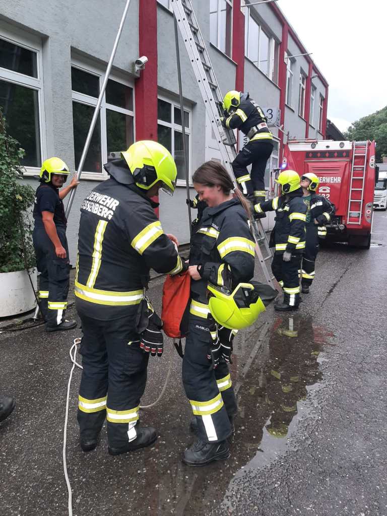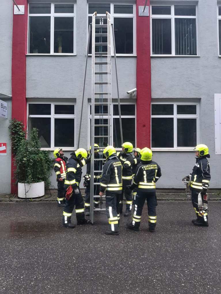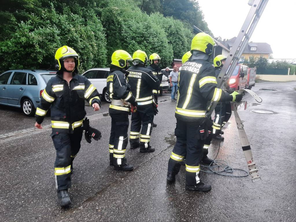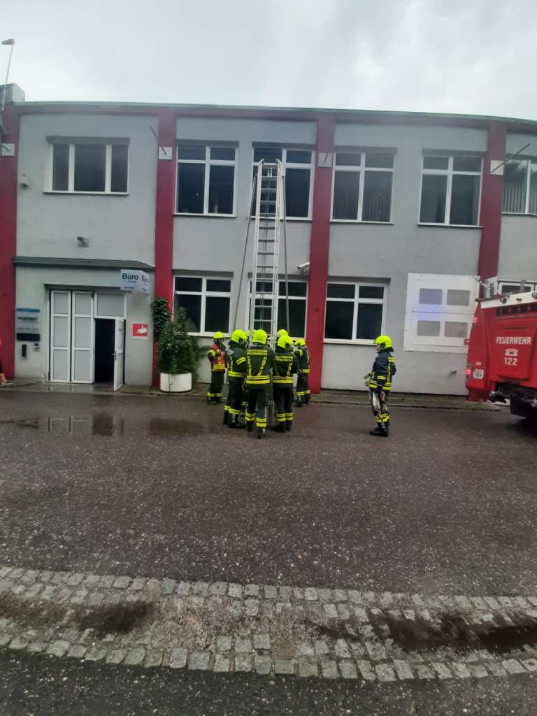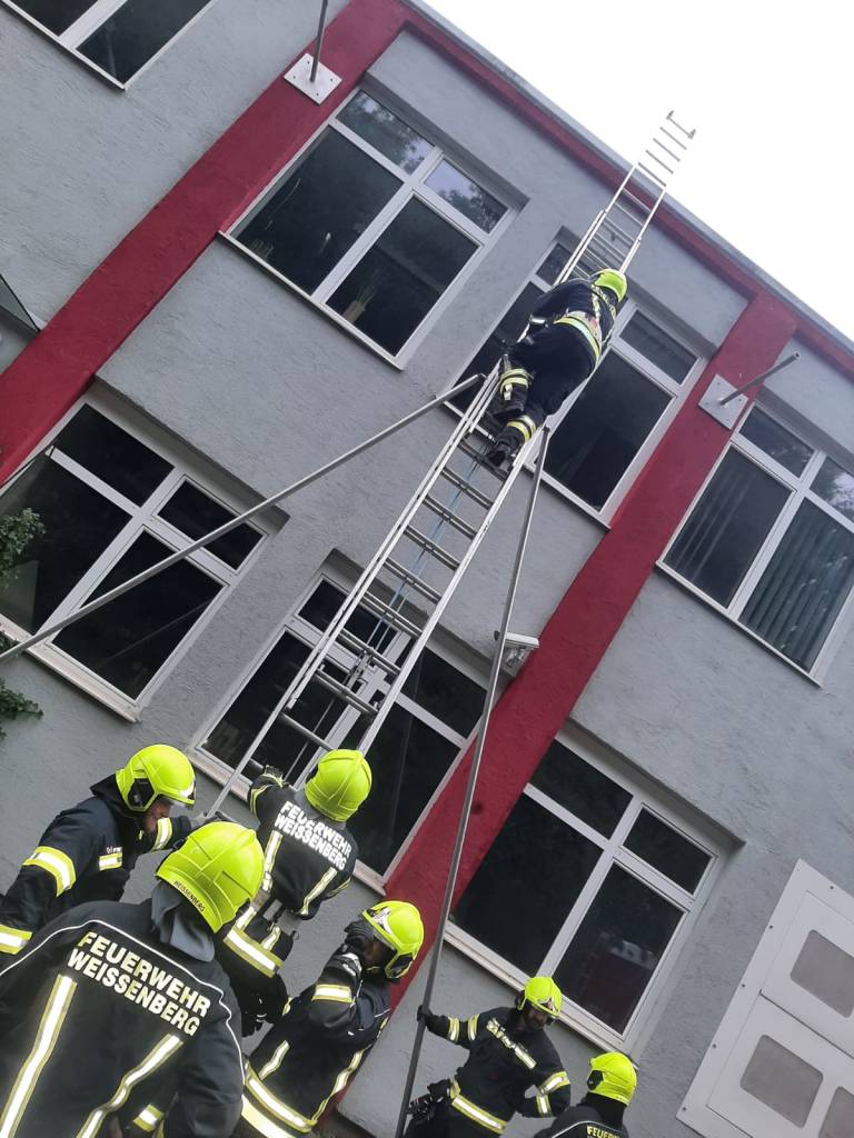 - Bericht: am Sonntag, den 18.7.2021, wurde die FF Weissenberg zu einem Wasserschaden in der Hofmühle alarmiert. Durch die intensiven Regenfälle drang im Bereich eines Stiegenhauses Wasser durch die Decke ein. Nach Erkundung des Einsatzleiters konnte unter Zuhilfenahme der dreiteiligen Schiebeleiter die undichte Stelle im Bereich einer Lichtkuppel gefunden und provisorisch abgedichtet werden.