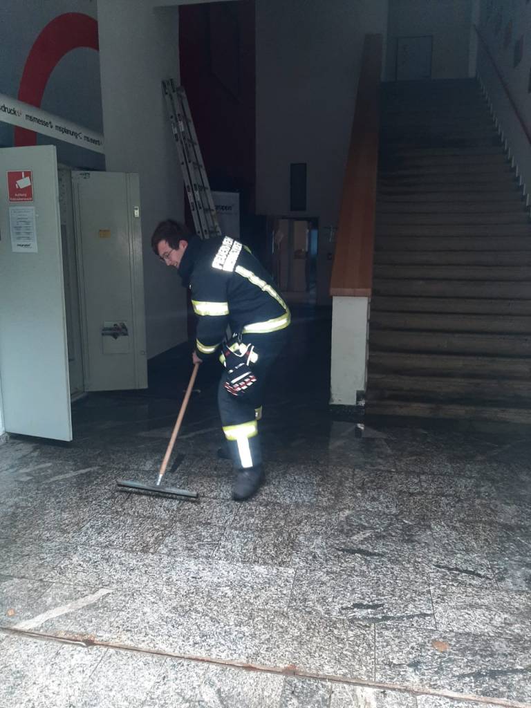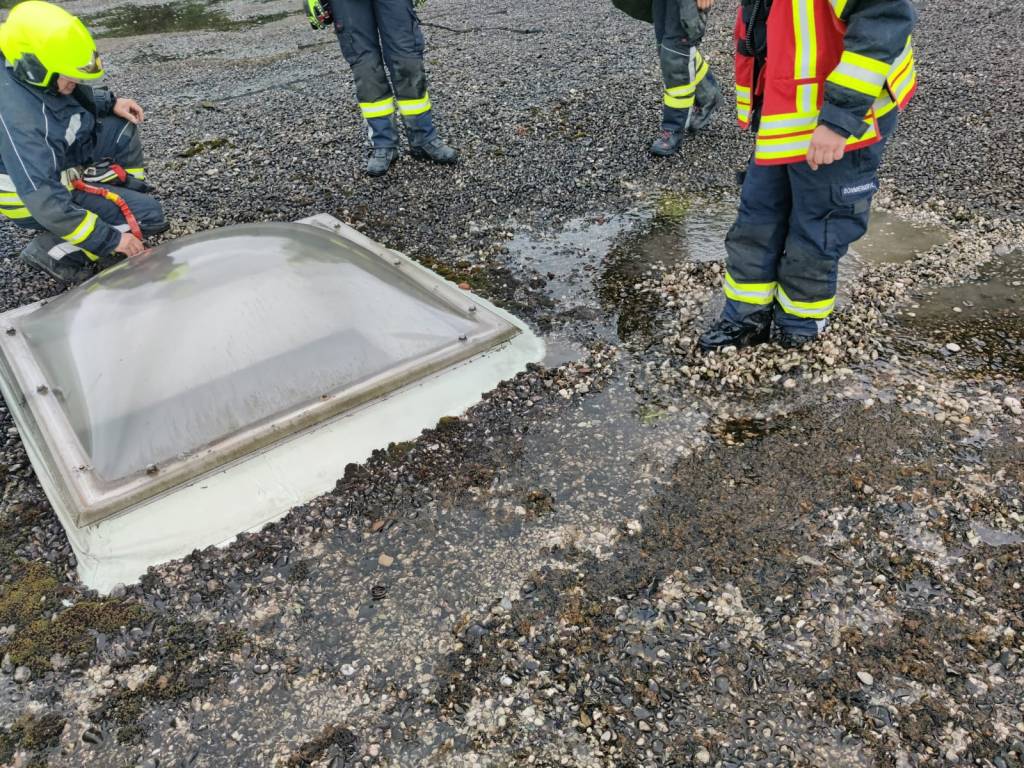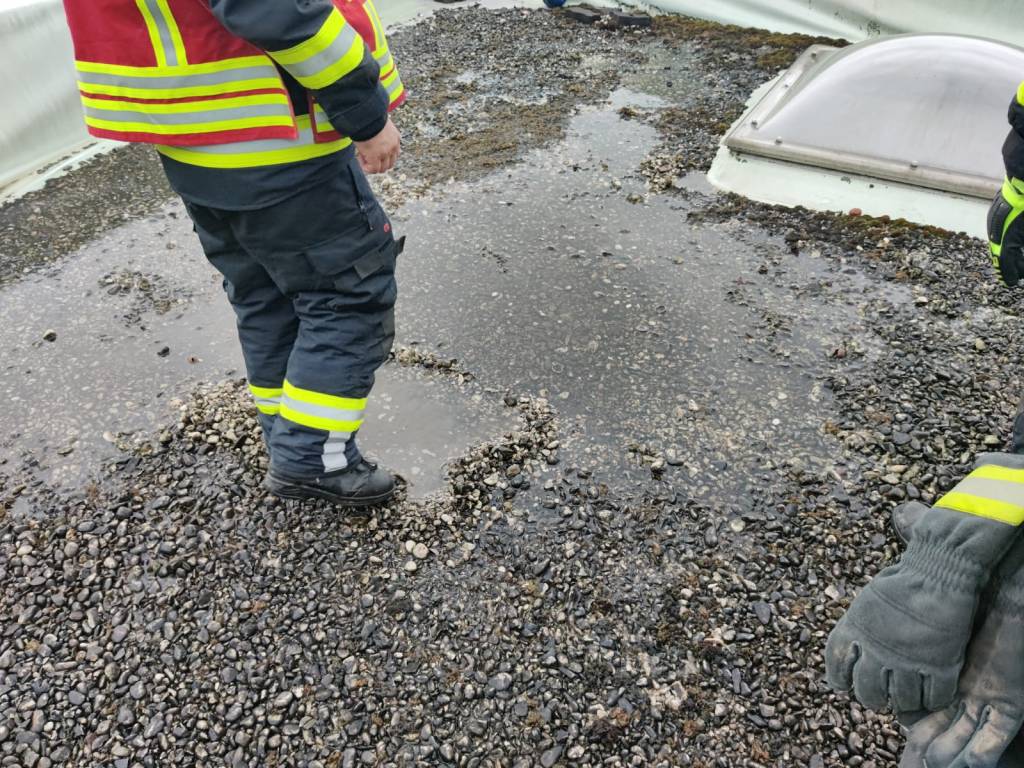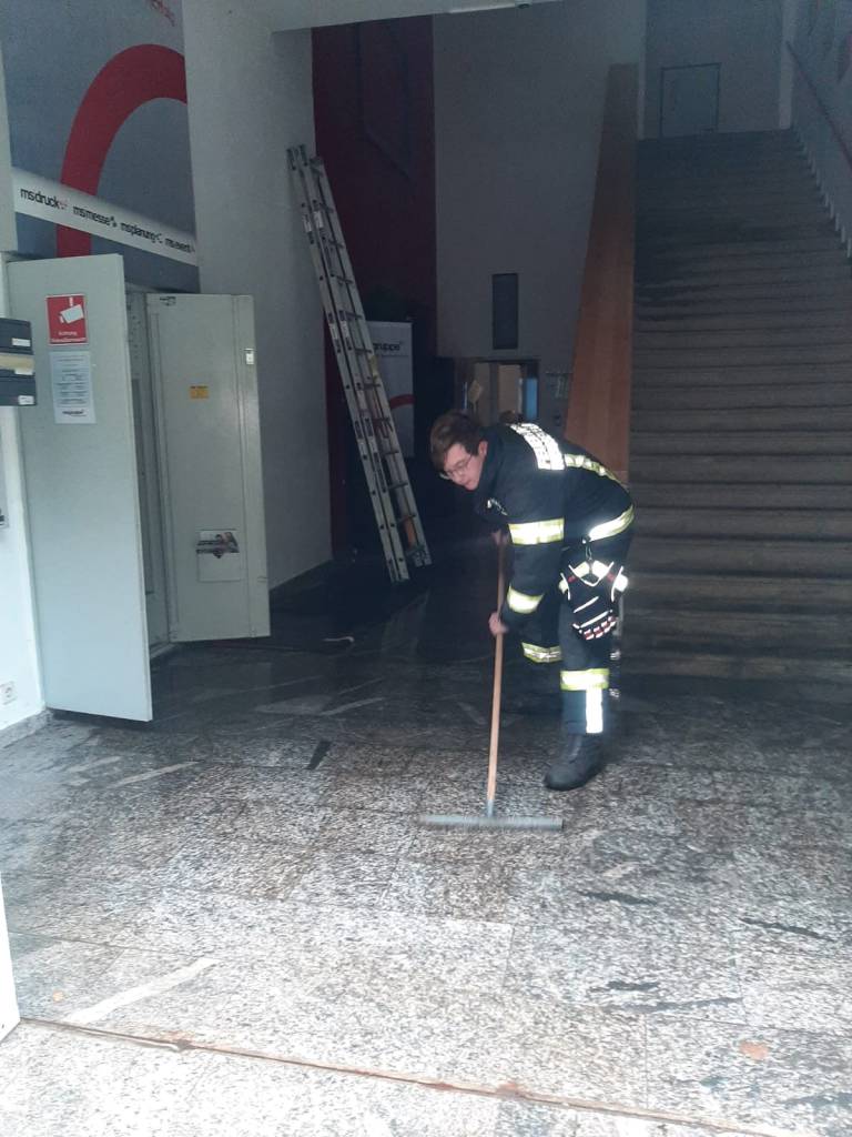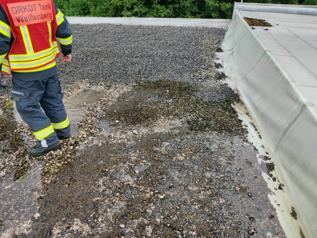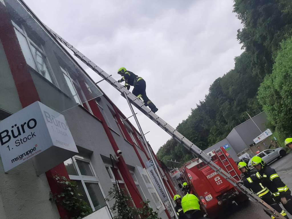 - Bericht: am Sonntag, den 18.7.2021, wurde die FF Weissenberg zu einem Wasserschaden in der Hofmühle alarmiert. Durch die intensiven Regenfälle drang im Bereich eines Stiegenhauses Wasser durch die Decke ein. Nach Erkundung des Einsatzleiters konnte unter Zuhilfenahme der dreiteiligen Schiebeleiter die undichte Stelle im Bereich einer Lichtkuppel gefunden und provisorisch abgedichtet werden.