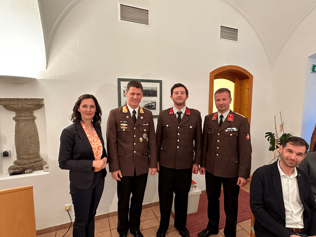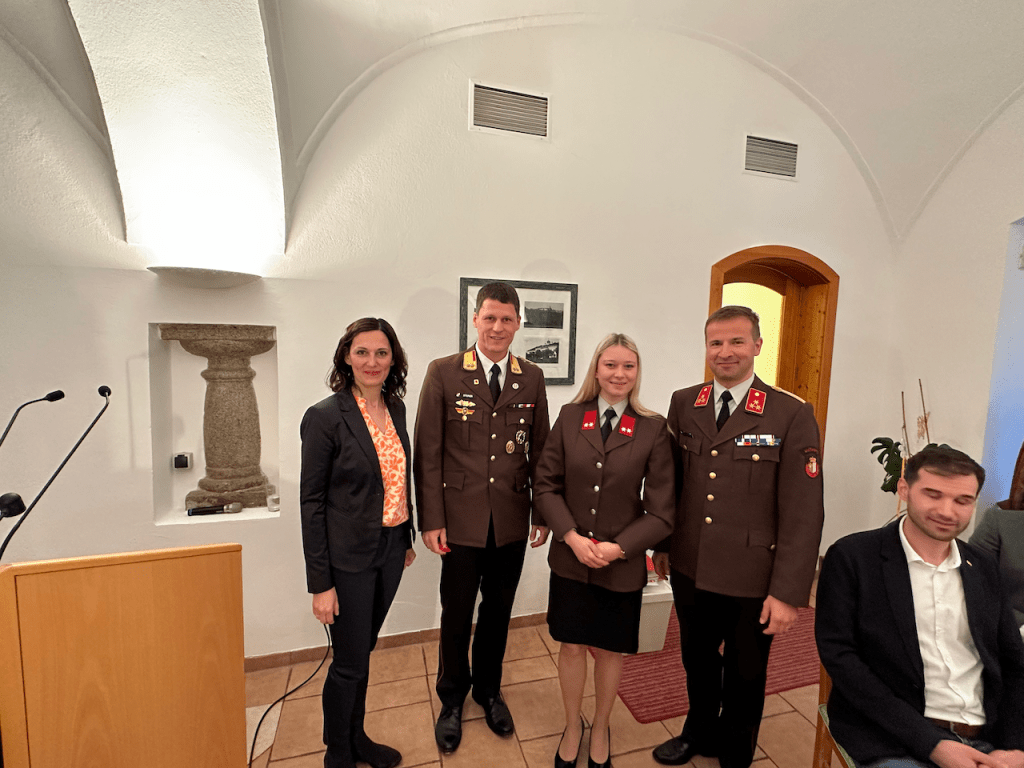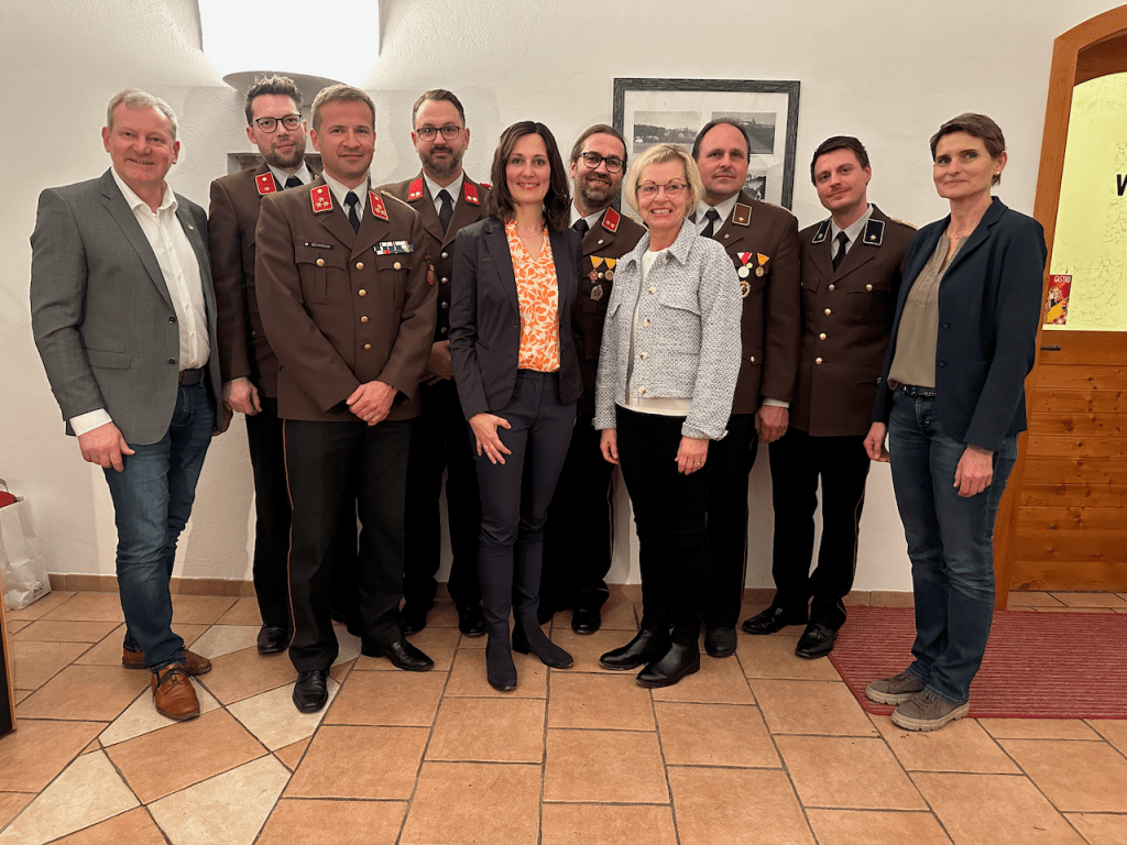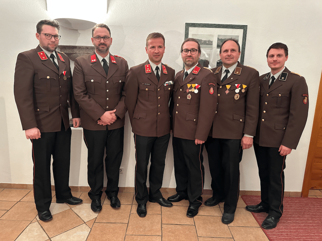 Wir bedanken uns bei unseren Ehrengästen – Bgm. Petra Baumgartner, VBgm. Gertraud Eckerstorfer, VBgm. Manfred Kobler, Sonja Emrich, Natascha Blaimschein, Michael Langerhorst und AbtInsp. Wolfgang Fröschl aus Neuhofen, Bgm. Walter Lazelsberger aus St. Marien, Bgm. Christian Partoll aus Ansfelden und den Feuerwehrfunktionären BR Andreas Steiner, ABI Philip Tschautscher, ABI Dominik Mitterndorfer, HBI Dominik Schenter, sowie E-OBR Walter Sonnberger, E-BR Erich Minichberger und E-HBI Wilhelm Orawski – für Ihr Erscheinen und ihre wertschätzenden Worte und gratulieren allen Angelobten, Beförderten und ernannten KameradInnen.