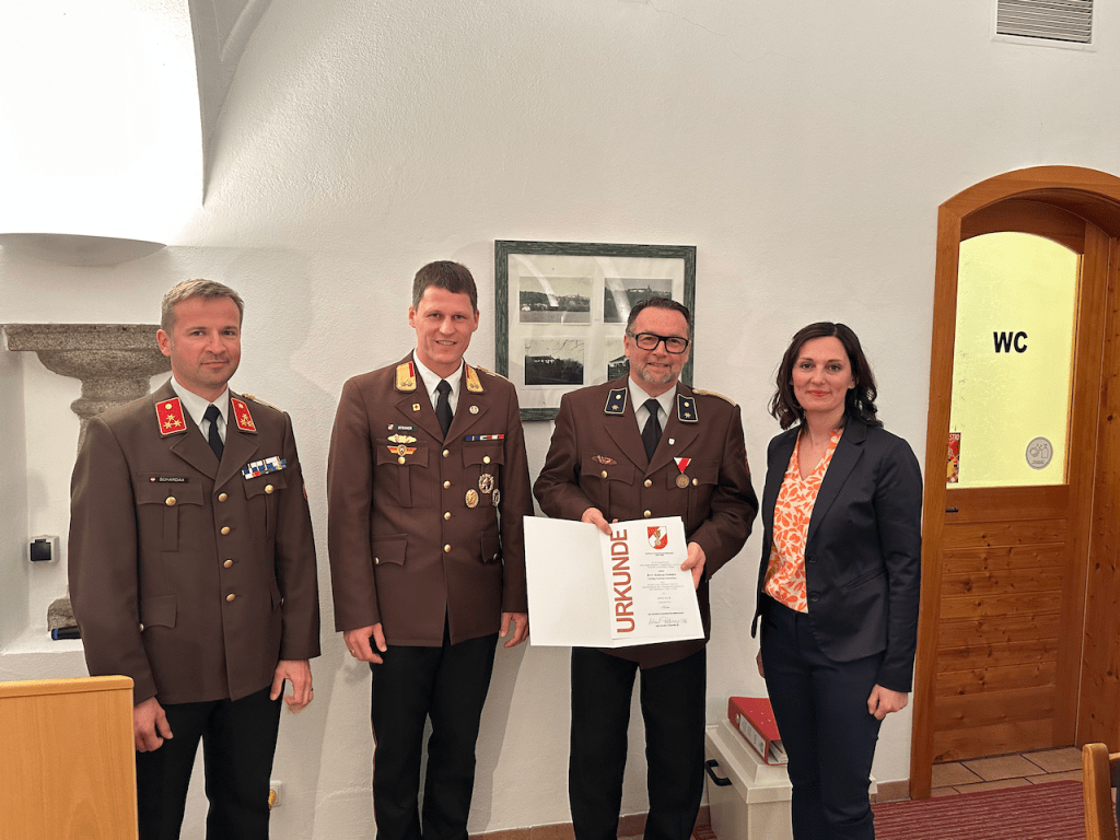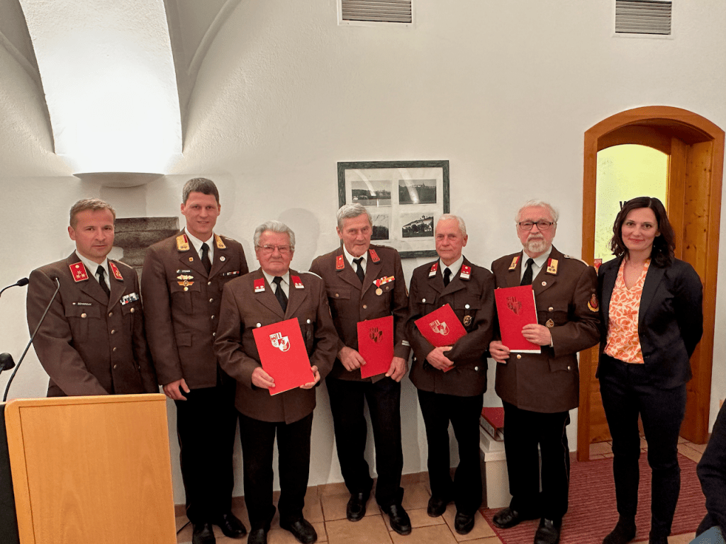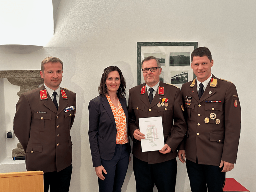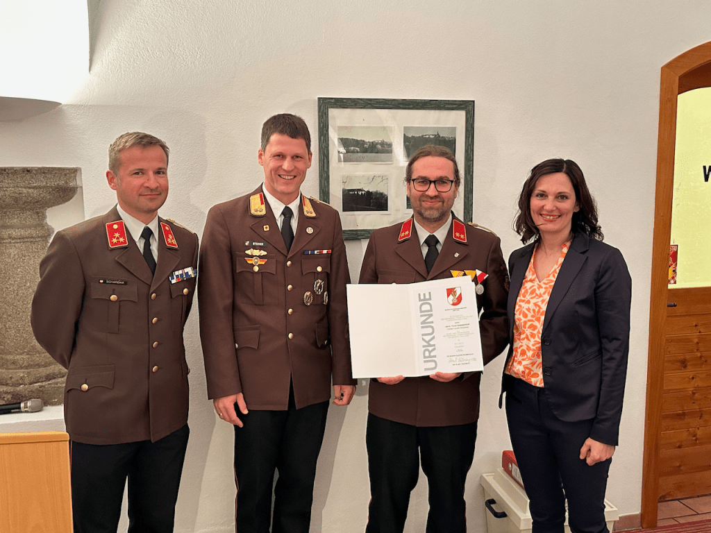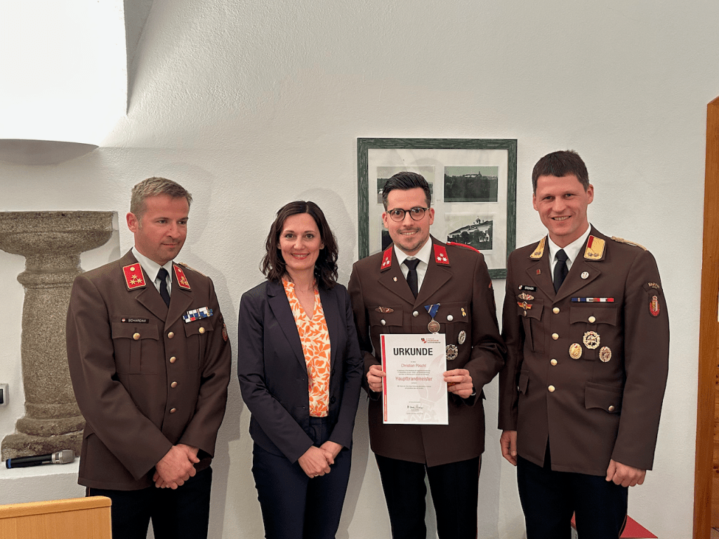 Wir bedanken uns bei unseren Ehrengästen – Bgm. Petra Baumgartner, VBgm. Gertraud Eckerstorfer, VBgm. Manfred Kobler, Sonja Emrich, Natascha Blaimschein, Michael Langerhorst und AbtInsp. Wolfgang Fröschl aus Neuhofen, Bgm. Walter Lazelsberger aus St. Marien, Bgm. Christian Partoll aus Ansfelden und den Feuerwehrfunktionären BR Andreas Steiner, ABI Philip Tschautscher, ABI Dominik Mitterndorfer, HBI Dominik Schenter, sowie E-OBR Walter Sonnberger, E-BR Erich Minichberger und E-HBI Wilhelm Orawski – für Ihr Erscheinen und ihre wertschätzenden Worte und gratulieren allen Angelobten, Beförderten und ernannten KameradInnen.