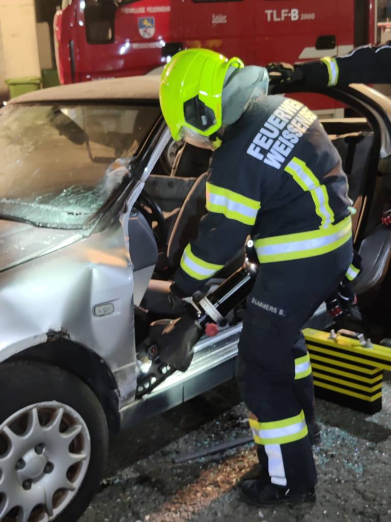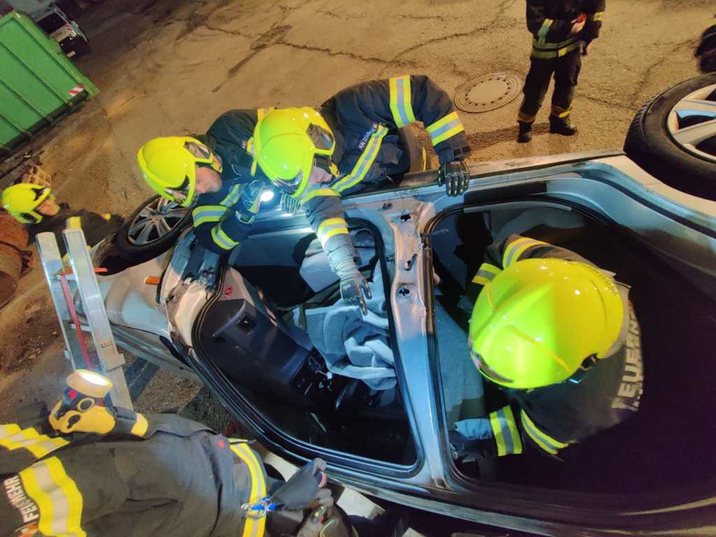 Im Rahmen der monatlichen Übung wurde ein Verkehrsunfall mit eingeklemmter Person simuliert. Der Fokus lag auf der patientenschonenden Rettung unter Einsatz von hydraulischem Rettungsgerät. Dabei trainierten wir das fachgerechte Arbeiten mit Schere und Spreizer, die Stabilisierung des Unfallfahrzeugs sowie das kontrollierte Retten der eingeklemmten Person.