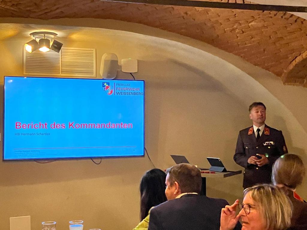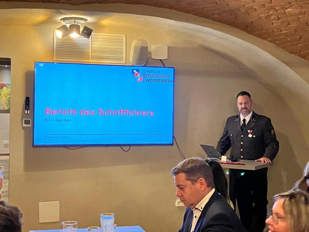 Unser Kommandant berichtete über das Einsatzgeschehen, besondere Herausforderungen und die vielen Stunden, die für Übungen und Fortbildungen aufgebracht wurden. Dabei wurde einmal mehr deutlich, wie wichtig Kameradschaft und Teamarbeit für unsere Feuerwehr sind.
