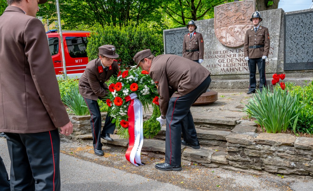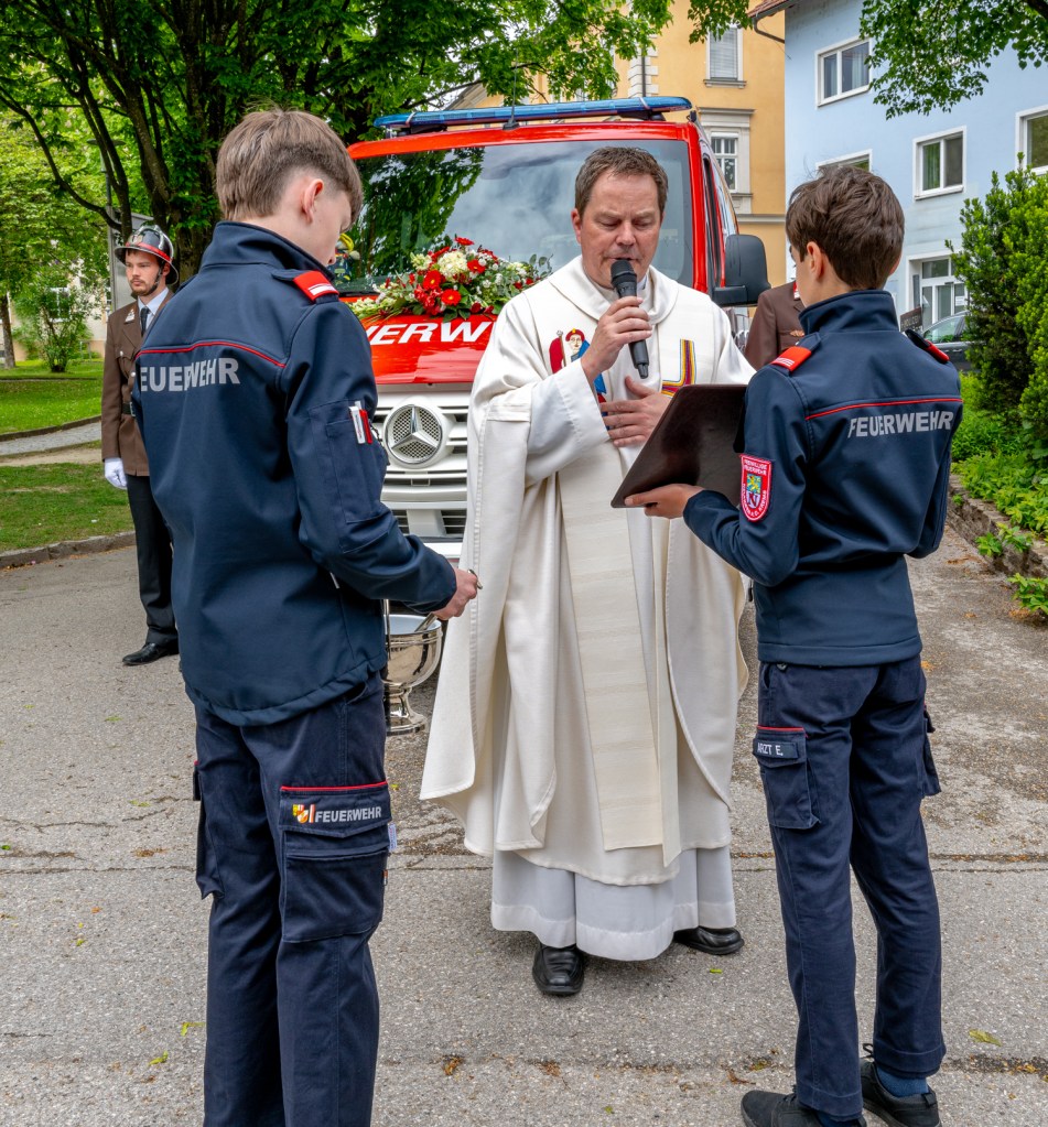 Nach der feierlichen Messe mit Pater Klaus wurde unser neues Mannschaftstransportfahrzeug (MTF) gesegnet und in den Dienst gestellt. Im Anschluss daran gedachten wir im Rahmen einer Kranzniederlegung beim Kriegerdenkmal all jener, die ihr Leben im Dienst für andere gegeben haben.