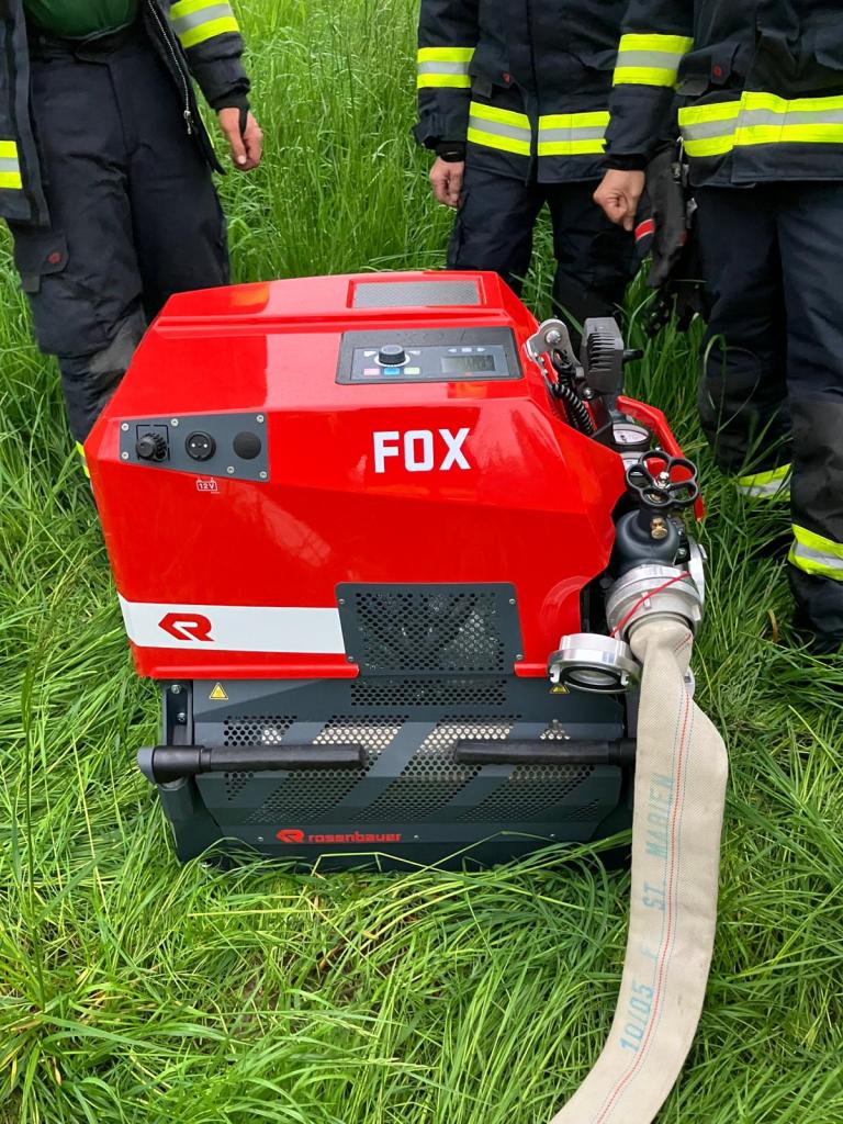 Nach einer kurzen Einschulung und Einweisung in die Bedienung wurde das neue Gerät bei einem simulierten Brandeinsatz direkt praktisch erprobt. Die TS überzeugte dabei mit hoher Leistung und sehr einfacher Handhabung.