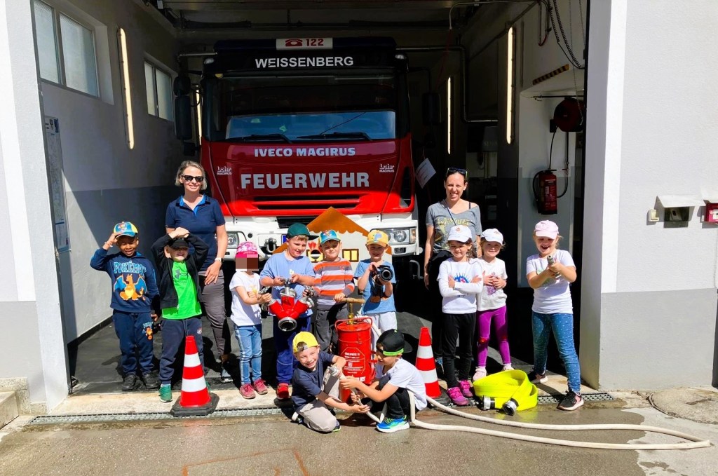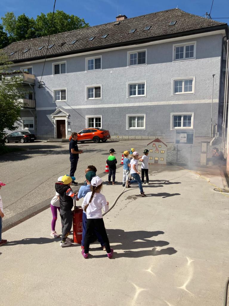 Den krönenden Abschluss bildete unser „brennendes Haus“, das die Kinder mit der Kübelspritze erfolgreich löschen konnten.