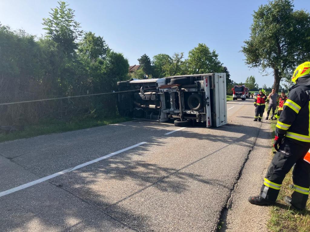 Am heutigen Morgen, den 26. Juni 2025, wurden wir um 08:07 Uhr zu einem Verkehrsunfall mit eingeklemmter Person in Nöstlbach Nord alarmiert. Ein Klein-LKW verlor aus bislang unbekannter Ursache in einer Kurve die Kontrolle und kippte seitlich um.