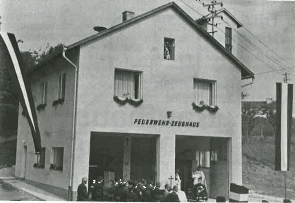 Die Einweihung der neuen Zeugstätte wurde am 16. August 1964 feierlich vorgenommen. Am Vormittag wurde im Schloßhof im Beisein zahlreicher Ehrengäste eine Feldmesse gefeiert. Gleichzeitig mit der Zeugstätte wurde auch die neu angeschaffte Motorspritze »VW-Automatik« der Weihe unterzogen.