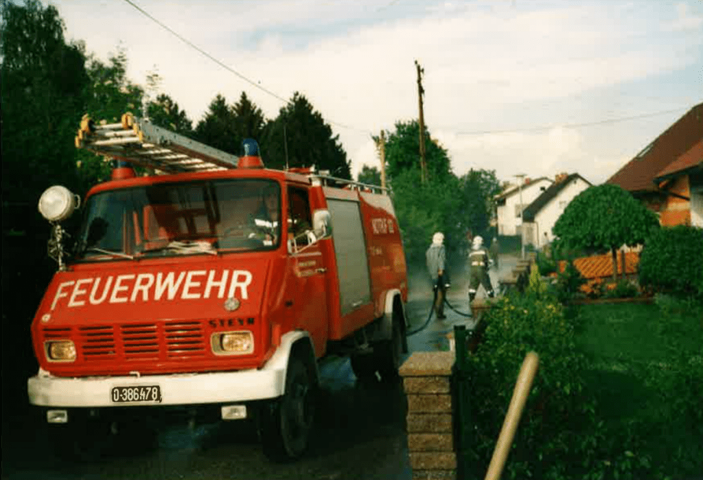 Im Jahre 1933 wurde auch der erste Rüstwagen von der Firma Öhlinger in St. Georgen im Attergau angekauft. Der Kaufpreis betrug S 1500.—. Dieser Betrag wurde bis zur Abzahlung von Wehrführer Sonnberger vorgestreckt. Die Umbauarbeiten des Aufbaues wurden von den Kameraden Untermaier, Pickl und H. Stögmüller durchgeführt.